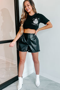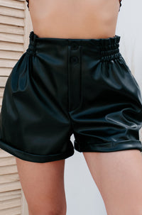 Full Of Drama Cuffed Faux Leather Shorts (Black)