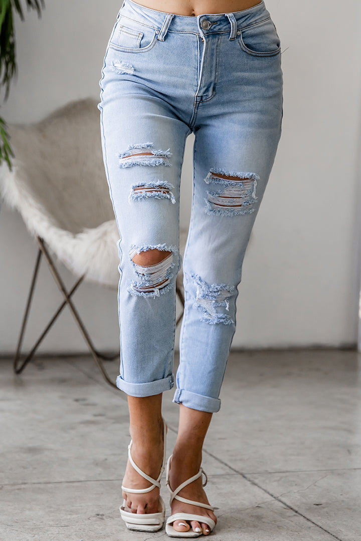 Mavis High Rise Distressed Mom Jeans (Light) - NanaMacs