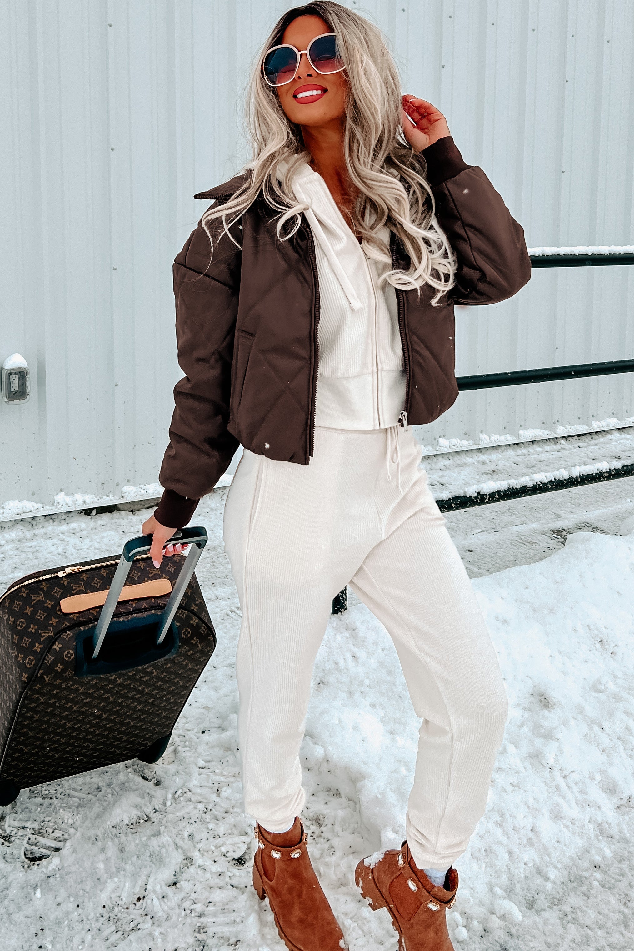 Lost In The City Quilted Faux Leather Jacket (Chocolate Brown)
