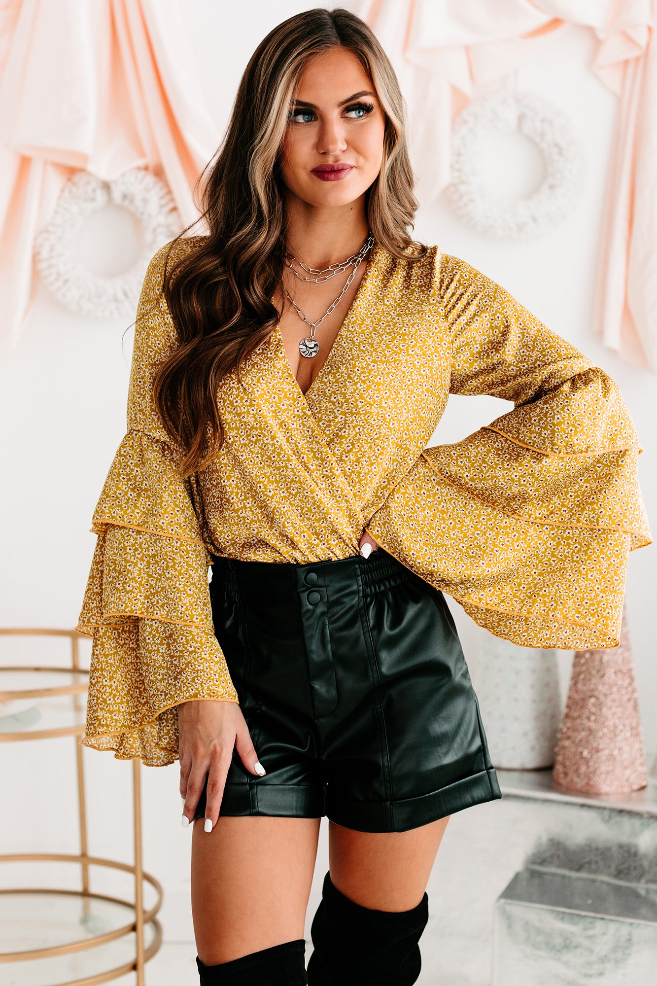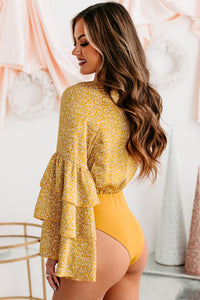 A Wholeful Heart Floral Bodysuit (Mustard/White)