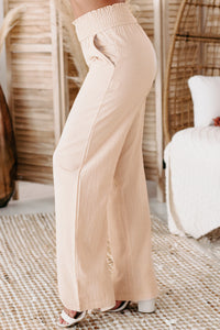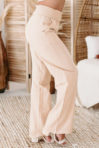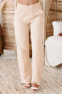 Stay Trendy & Chic With This Taupe, Smocked, Ruched, Tube Top & Straight Leg Pants Set!