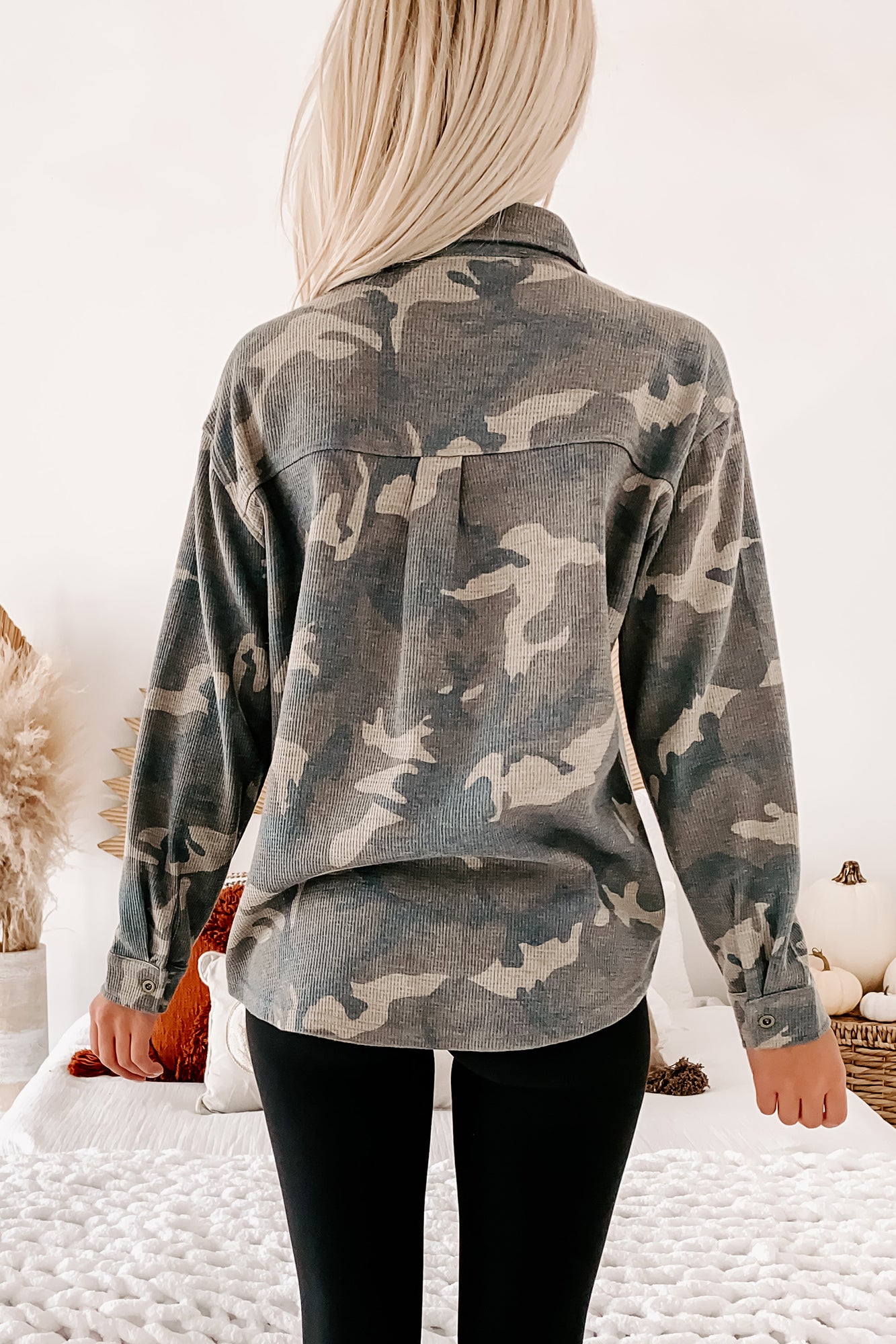 You're Gonna Want To Go Above & Beyond For This Amazing Camo Print, Thermal Knit, Button-Down! It's Casual Perfection!