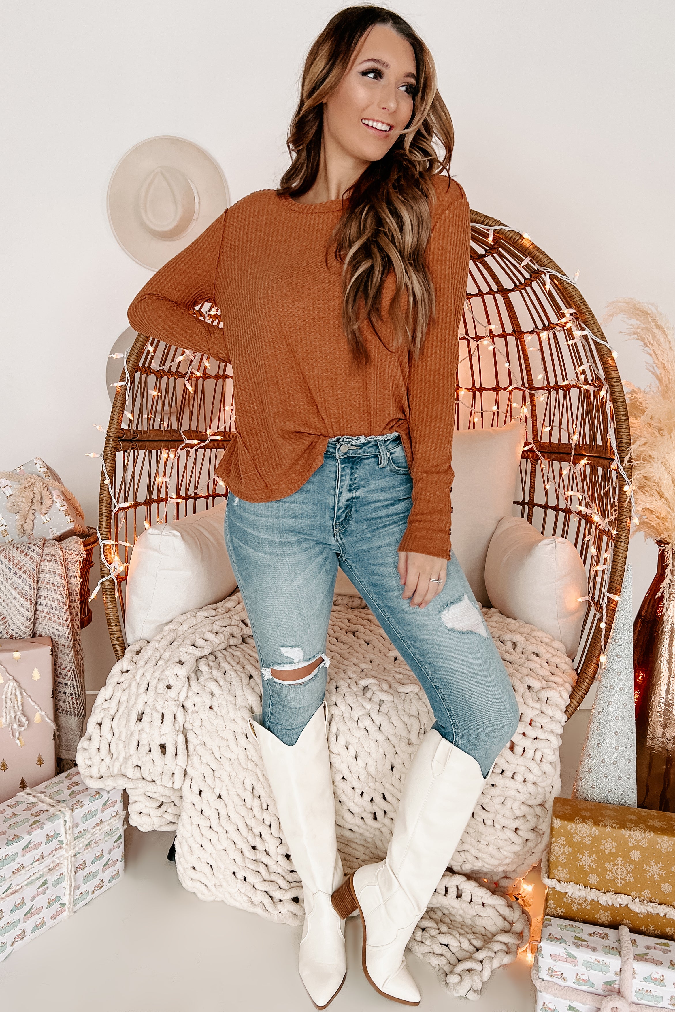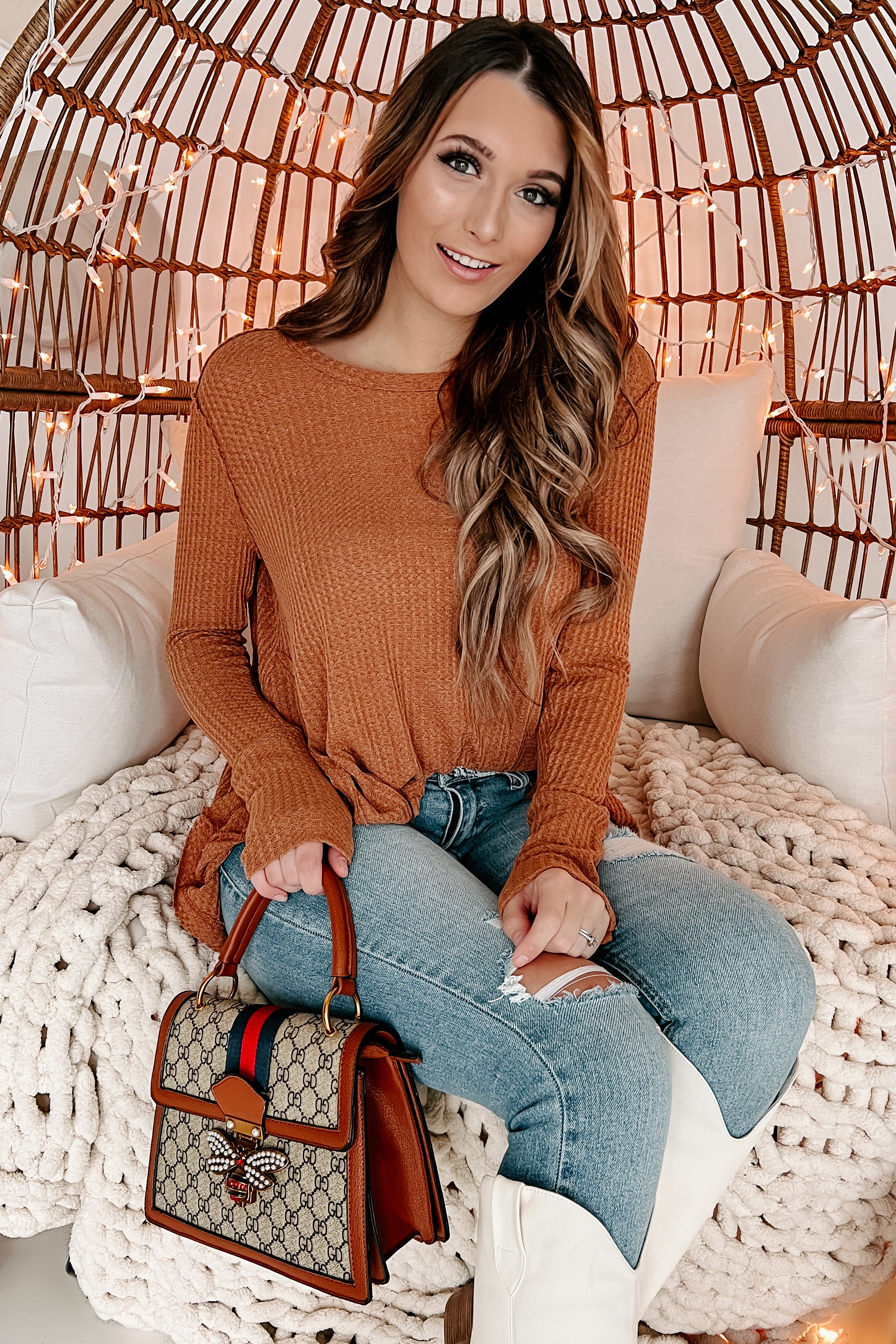 Accept Your Fate Long Sleeve Waffle Knit Top (Pumpkin)