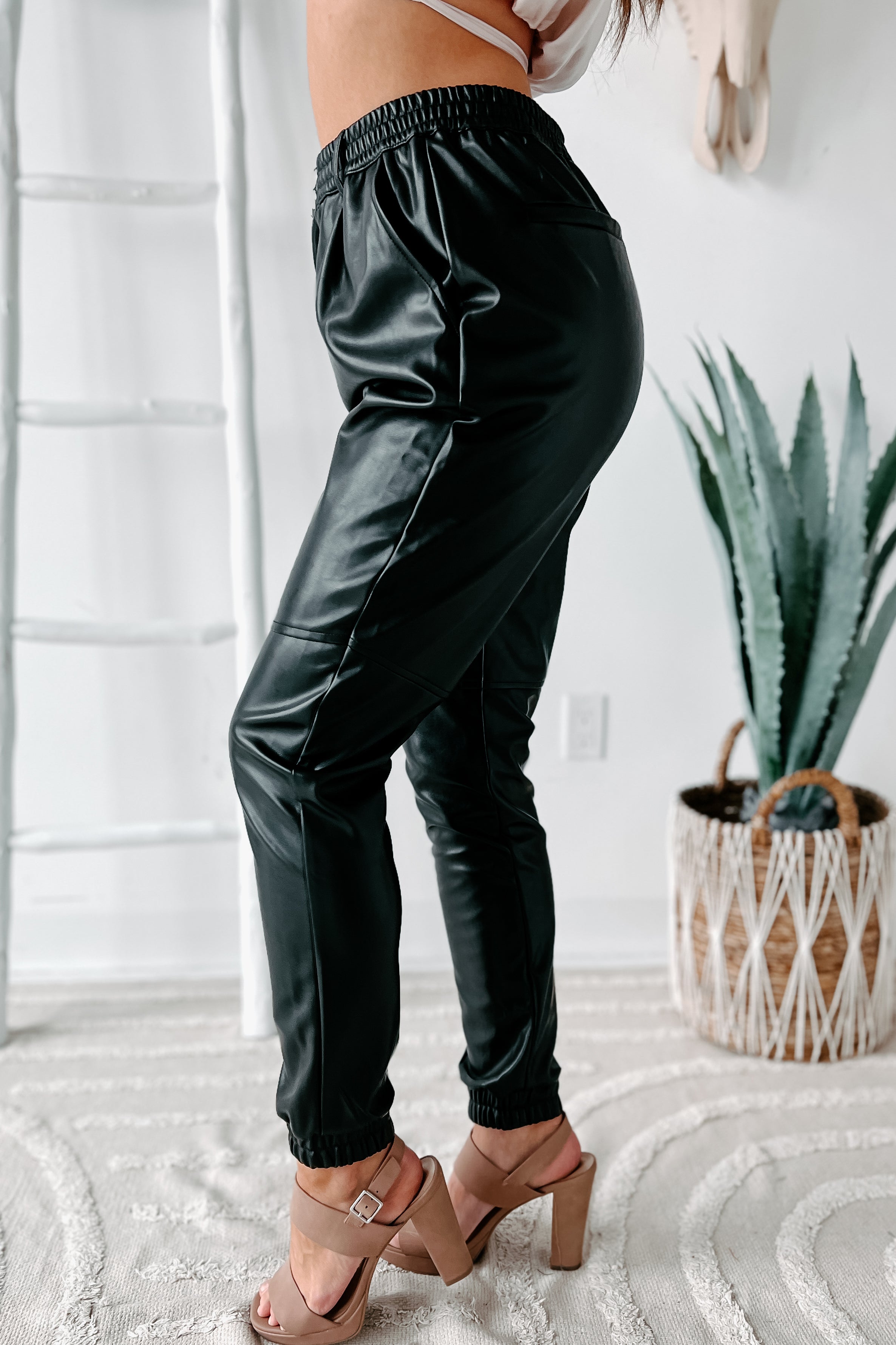 Be Trendy & Cool In These Black, Faux Leather Joggers!