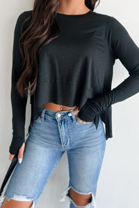 Adair Side Slit Long Sleeve Zenana Top (Black)