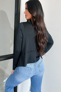 Adair Side Slit Long Sleeve Zenana Top (Black) - NanaMacs