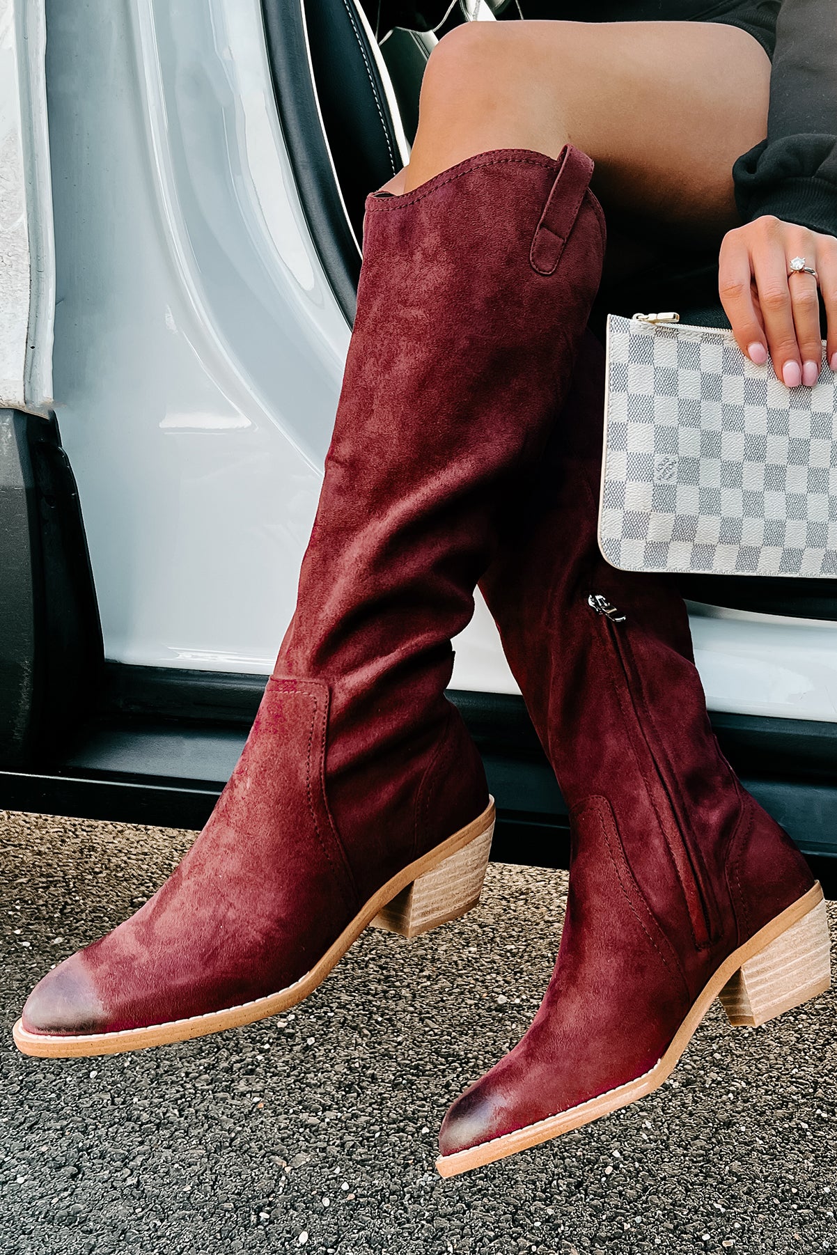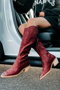 Adalee Faux Suede Knee High Boots (Burgundy)