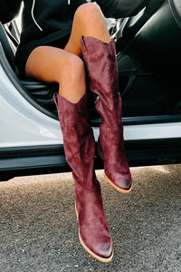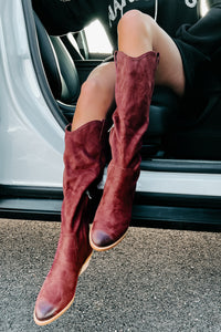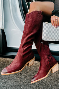 The Color Of These Western Style, Knee High, Faux Suede Boots Is Sure To Grab Your Attention!