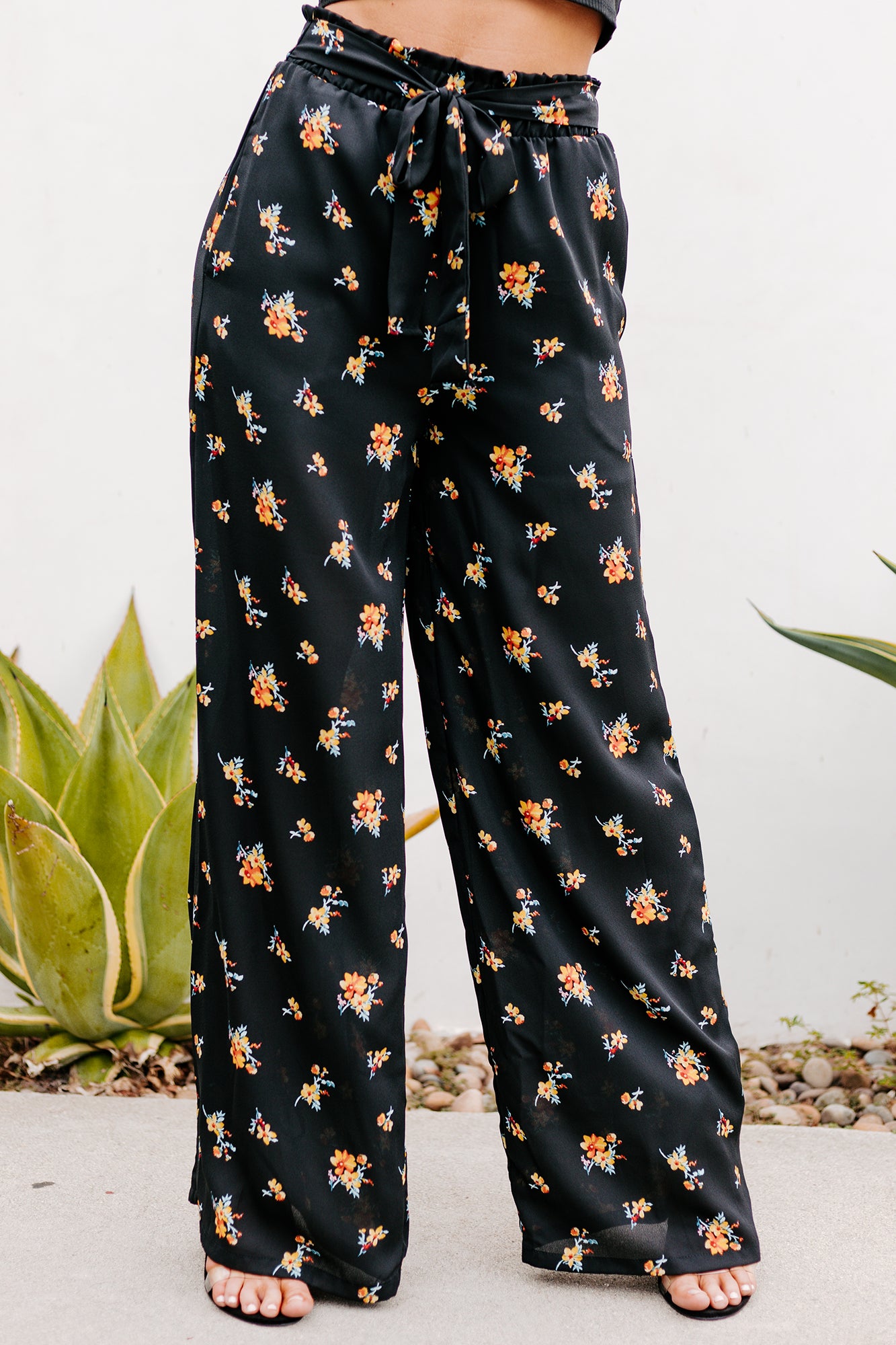 We're Growing Addicted To These Black, High Rise, Ruffled Waisted, Wide Leg, Floral Print Pants!