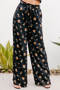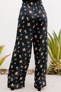 Addicted To Love Floral Print Wide Leg Pants (Black)