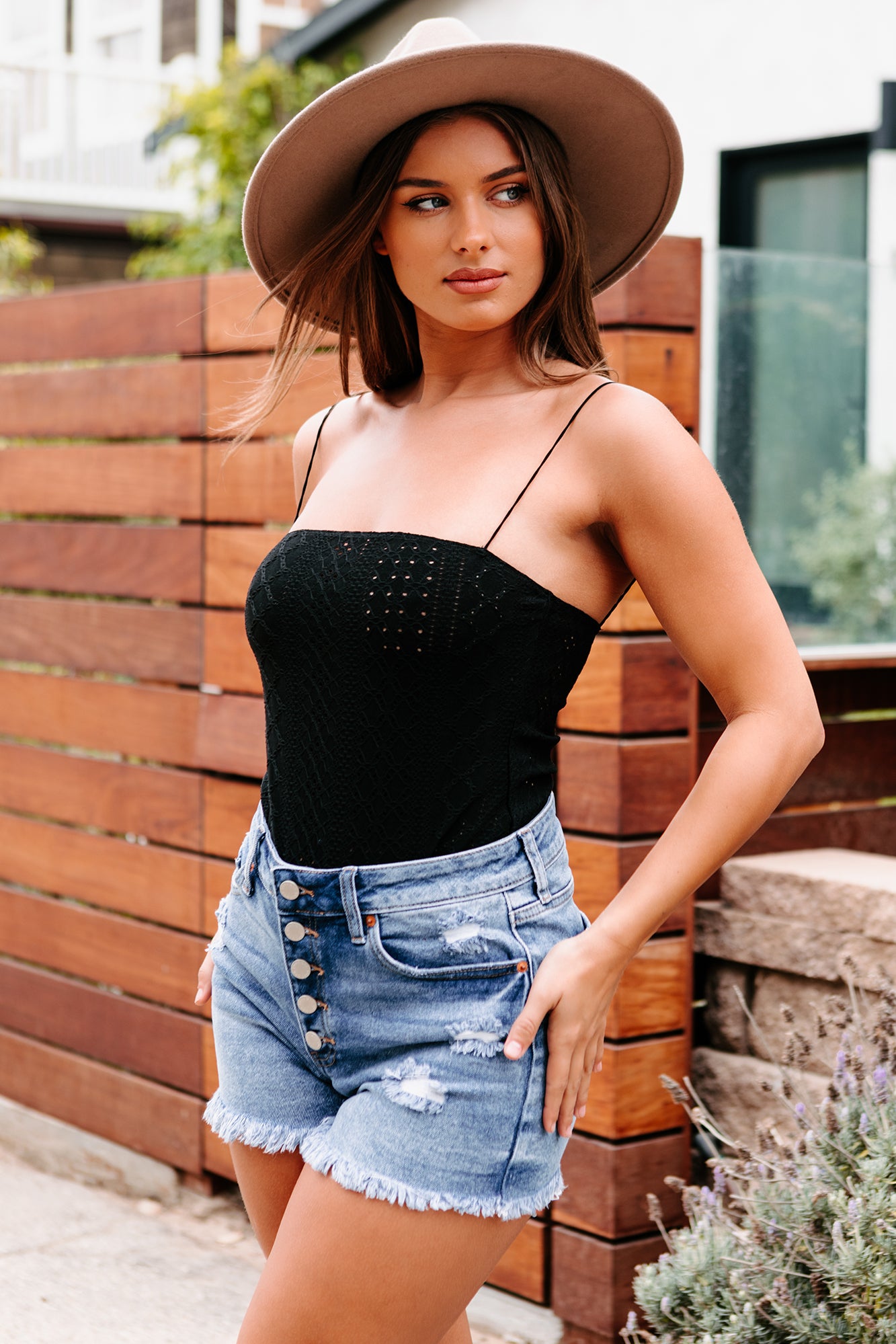 You'll fall in love with this black eyelet lace bodysuit, with a square neckline & stretchy thin straps!