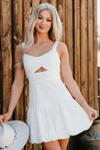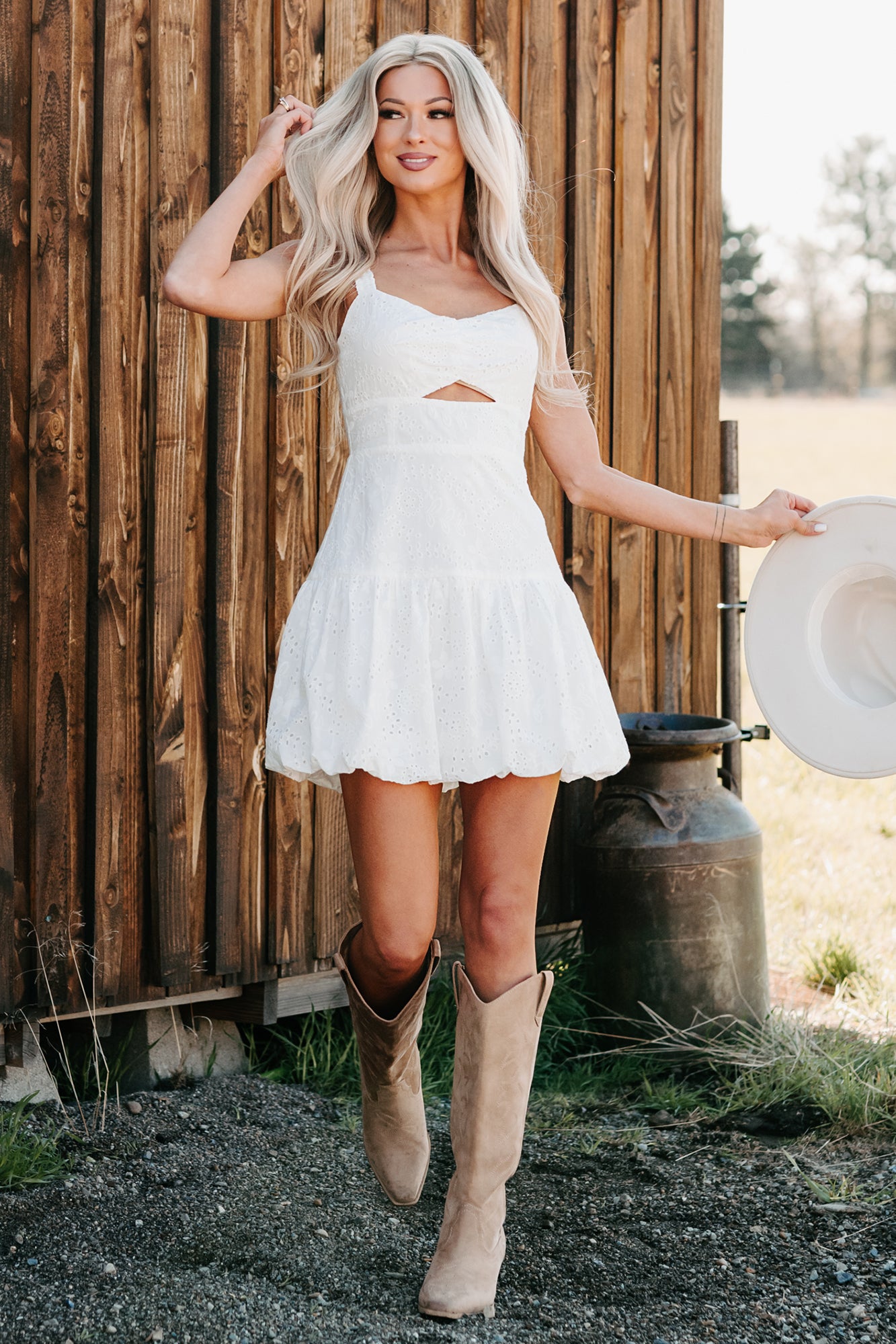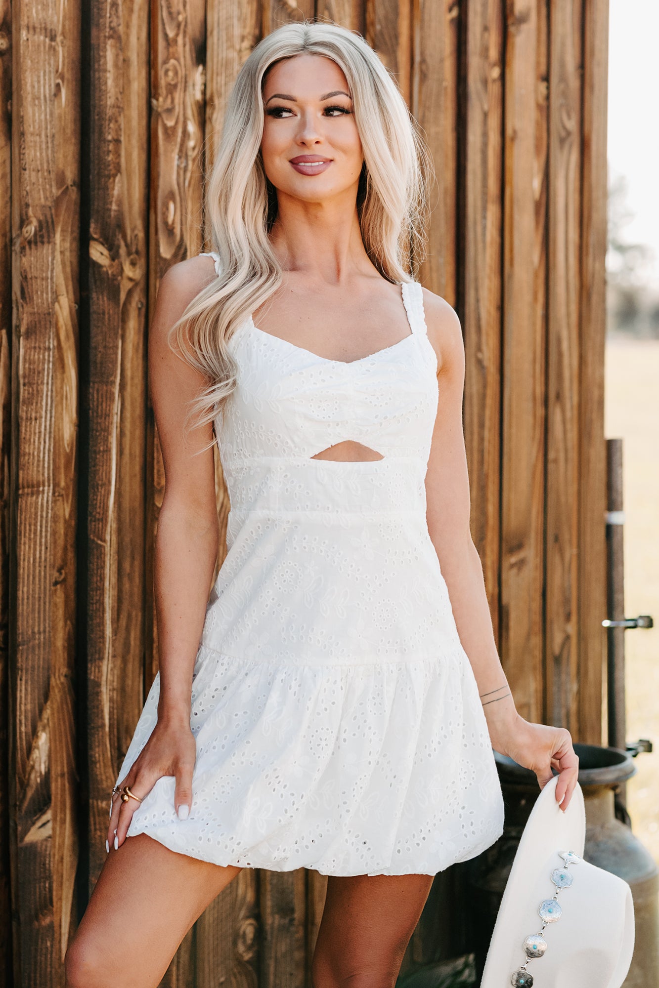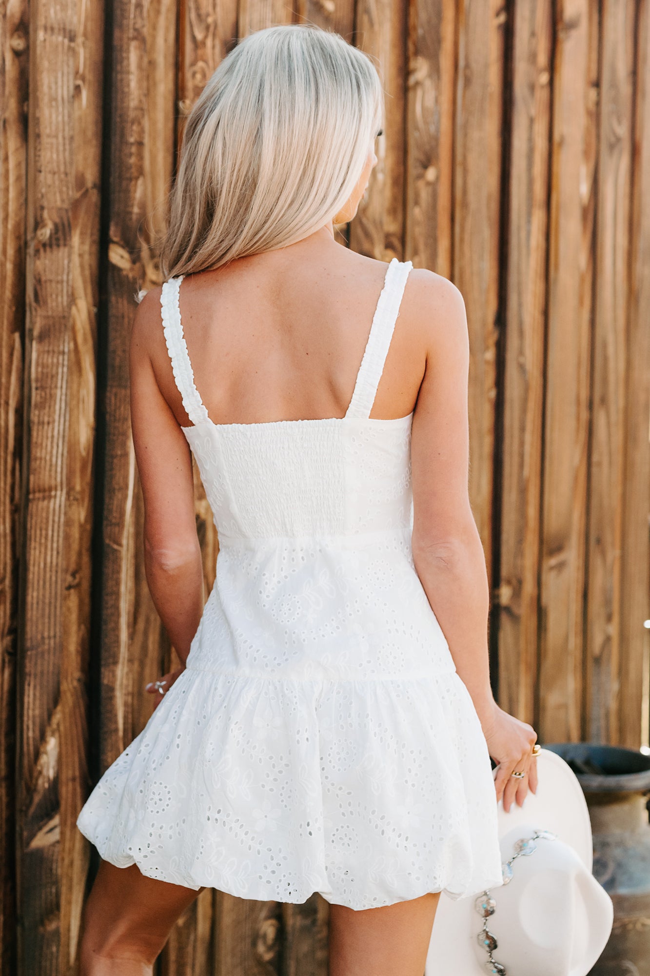 Almost A Dream Eyelet Lace Bubble Hem Dress (White)