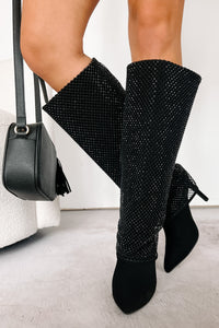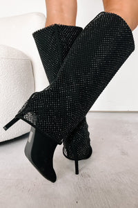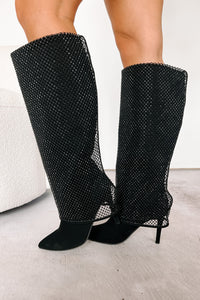 Always A Baddie Rhinestone Mesh Fold-Over Boots (Black)