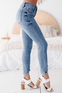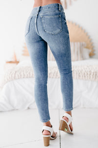 Snag These Medium Wash, Mid-Rise, Distressed Hem Skinny Jeans Today!