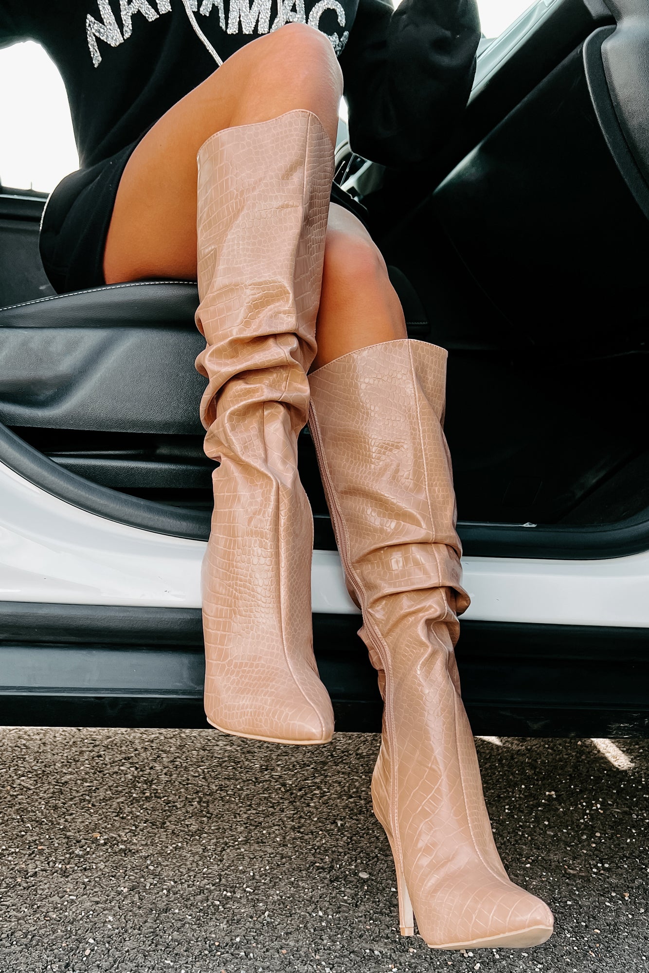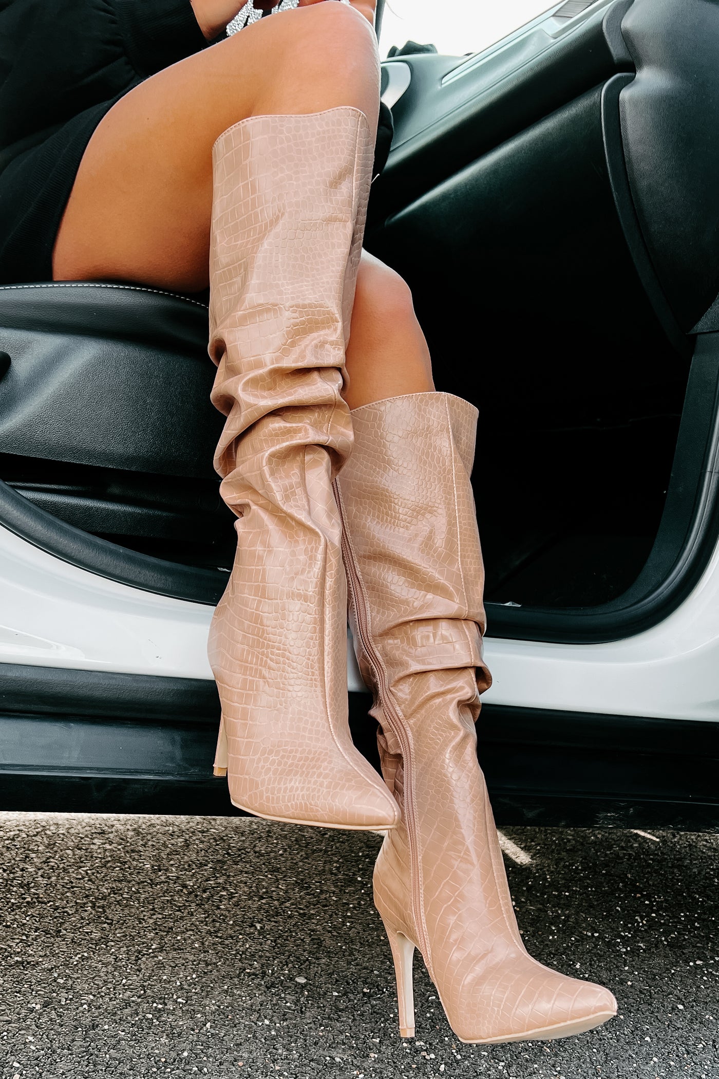 Always Trendy Slouchy Faux Croc Boots (Nude Croc) - NanaMacs