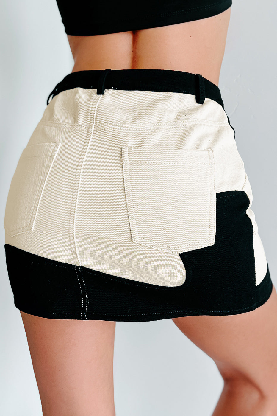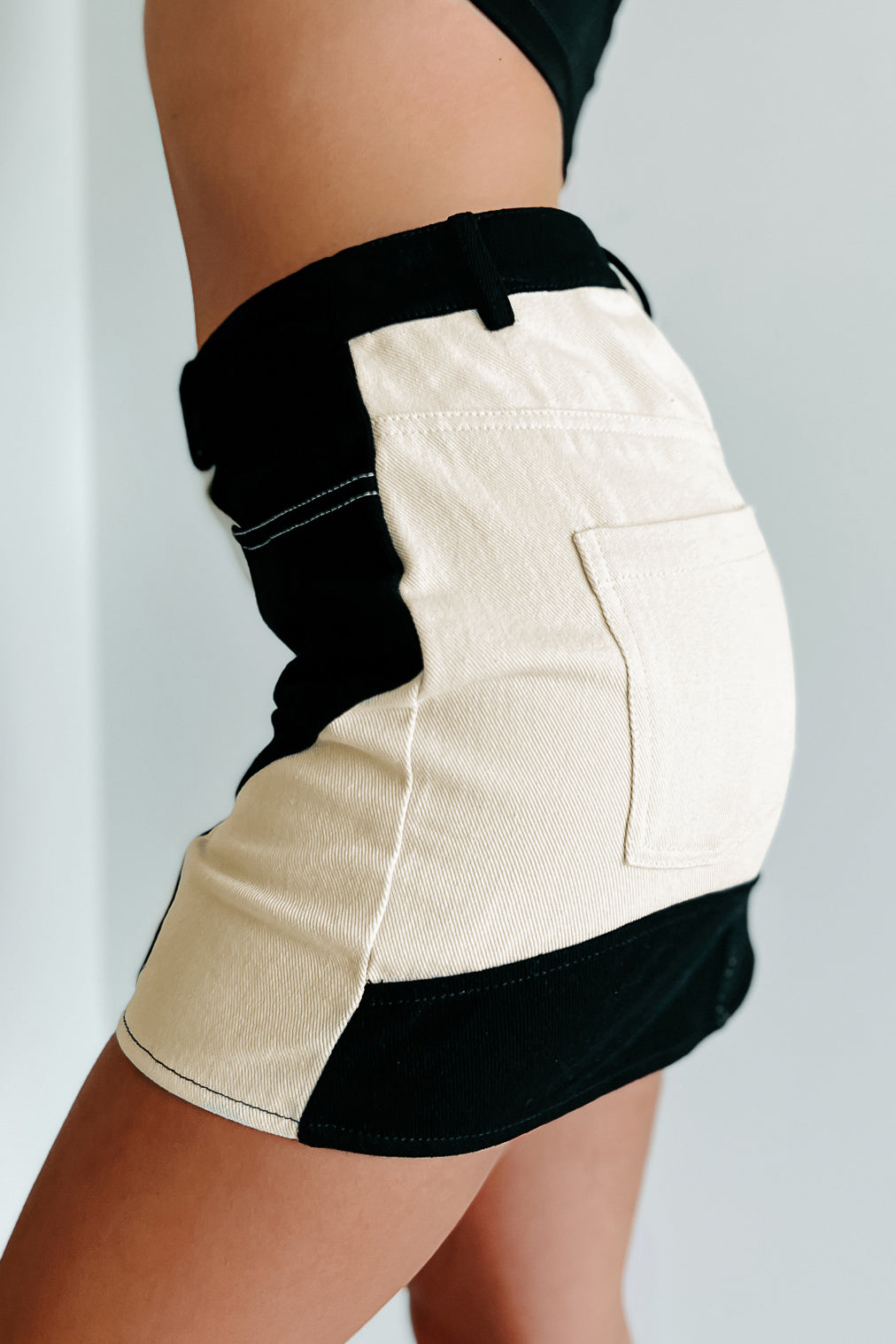 Always Wavy Two-Tone Mini Skirt (Black/Cream)