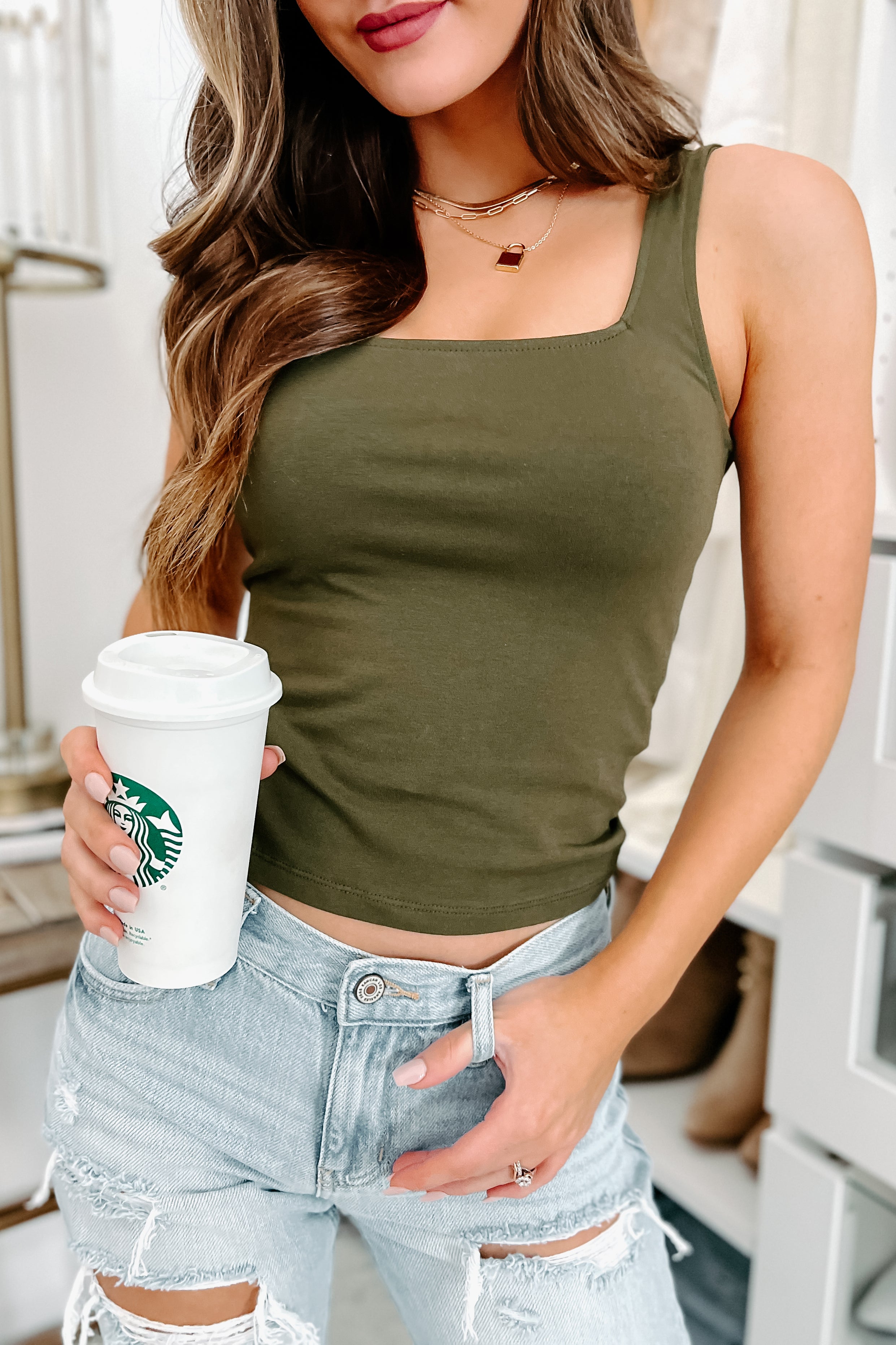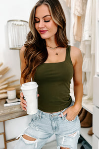 Amir Square Neck Tank Top (Olive) - NanaMacs