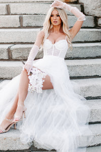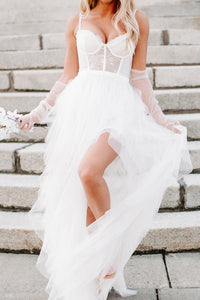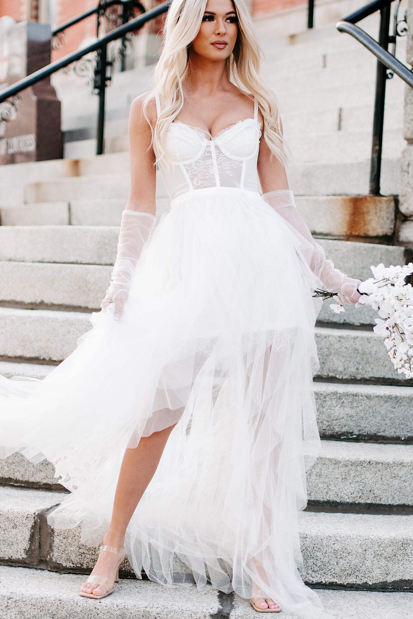 Angelic Feeling Tiered Corset Maxi Dress (White)