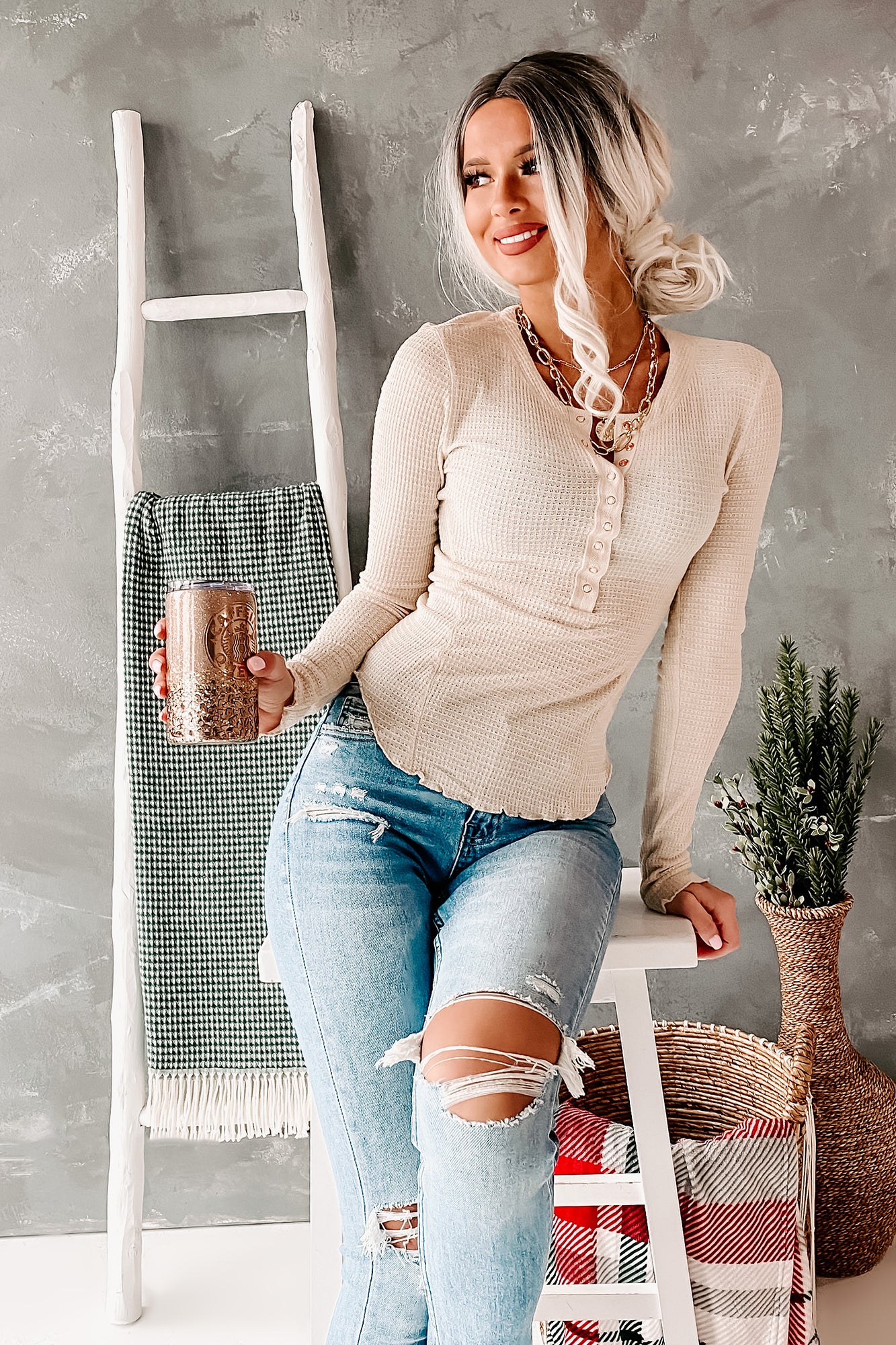 Anita Long Sleeve Waffle Knit Henley Top (Cream)
