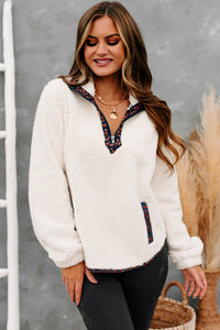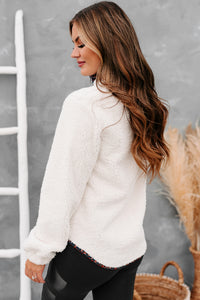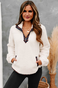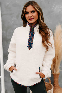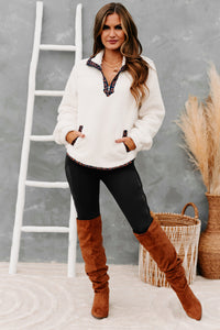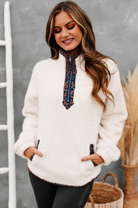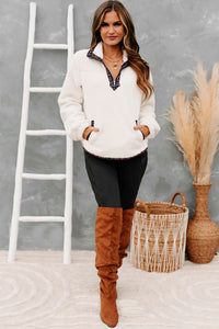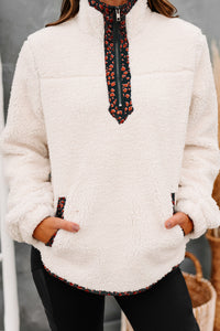 Live In Total Comfort With This Ivory, Quarter-Zip, Sherpa Pullover!