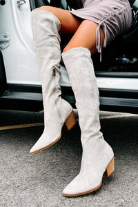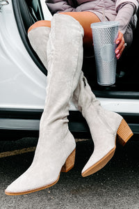 Arisa Faux Suede Over The Knee Boots (Grey)