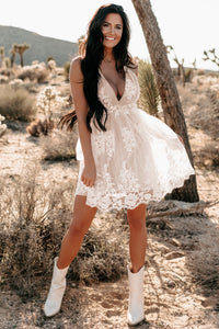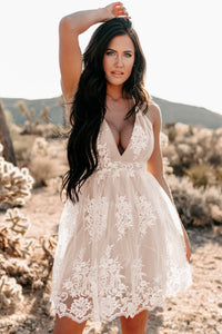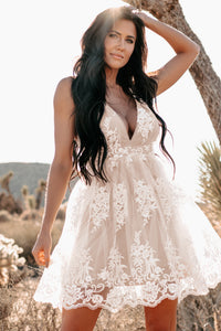Ask Me To Dance Floral Embroidered Mini Dress (Ivory/Nude) - NanaMacs