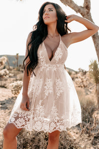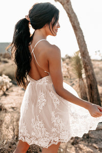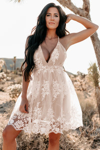 Ask Me To Dance Floral Embroidered Mini Dress (Ivory/Nude)