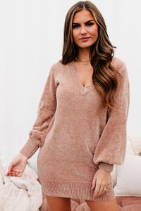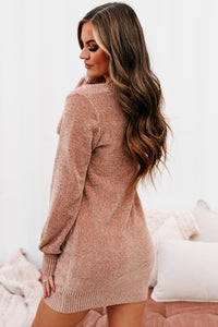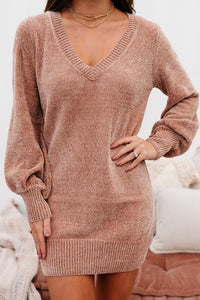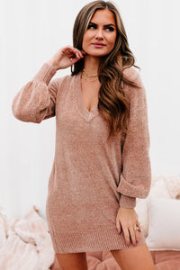 You're Missing Out If You Don't Snag This Dusty Rose, V-Neck, Chenille Knit Sweater Dress! It's The Softest Thing Ever!