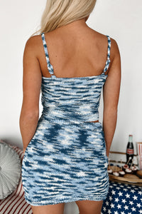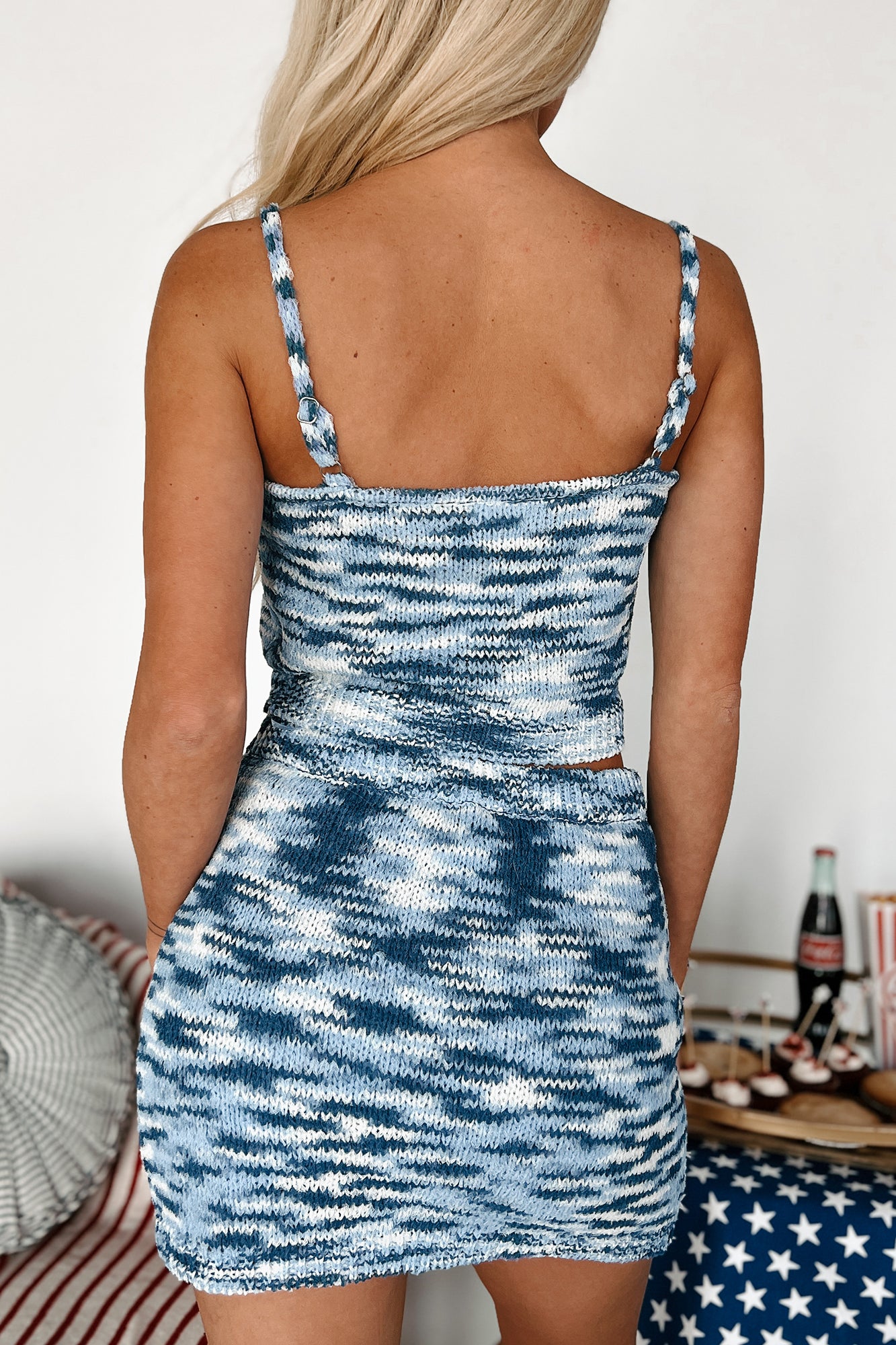 At The Harbor Sweater Knit Crop Top & Skirt Set (Blue)