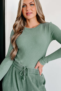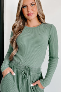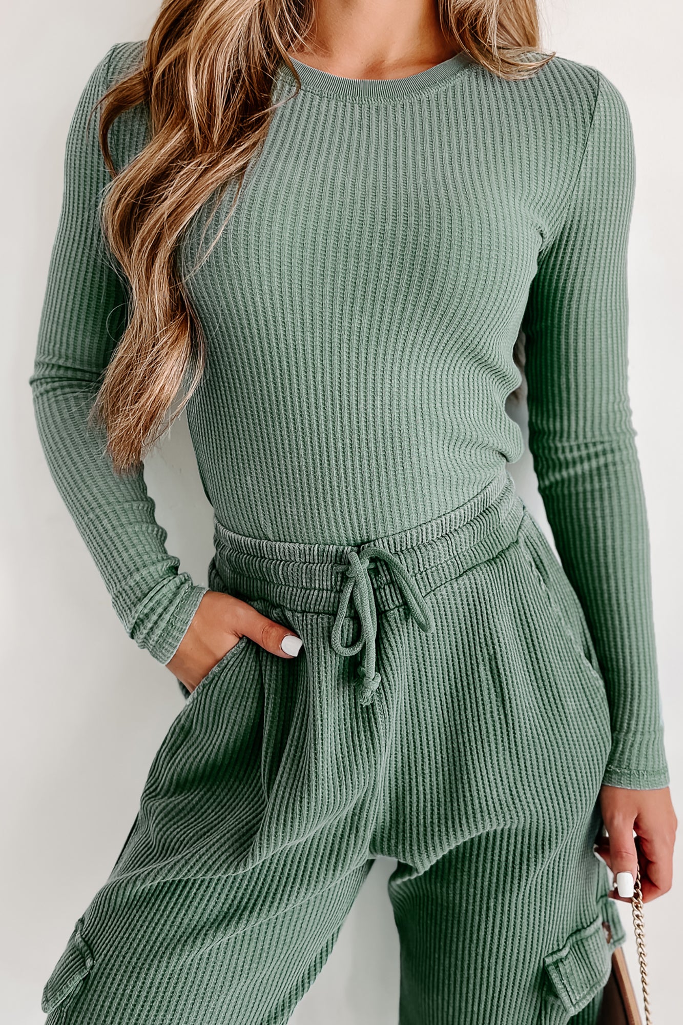 Back Roads & Tailgates Long Sleeve Waffle Top (Gray Green)