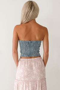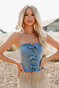 Back To Strangers Denim Bow Front Corset Top (Light Wash)