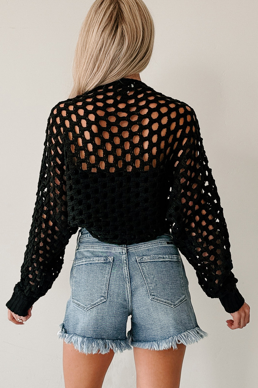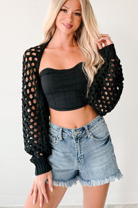 Back To Us Open Knit Bolero Shrug (Black) - NanaMacs