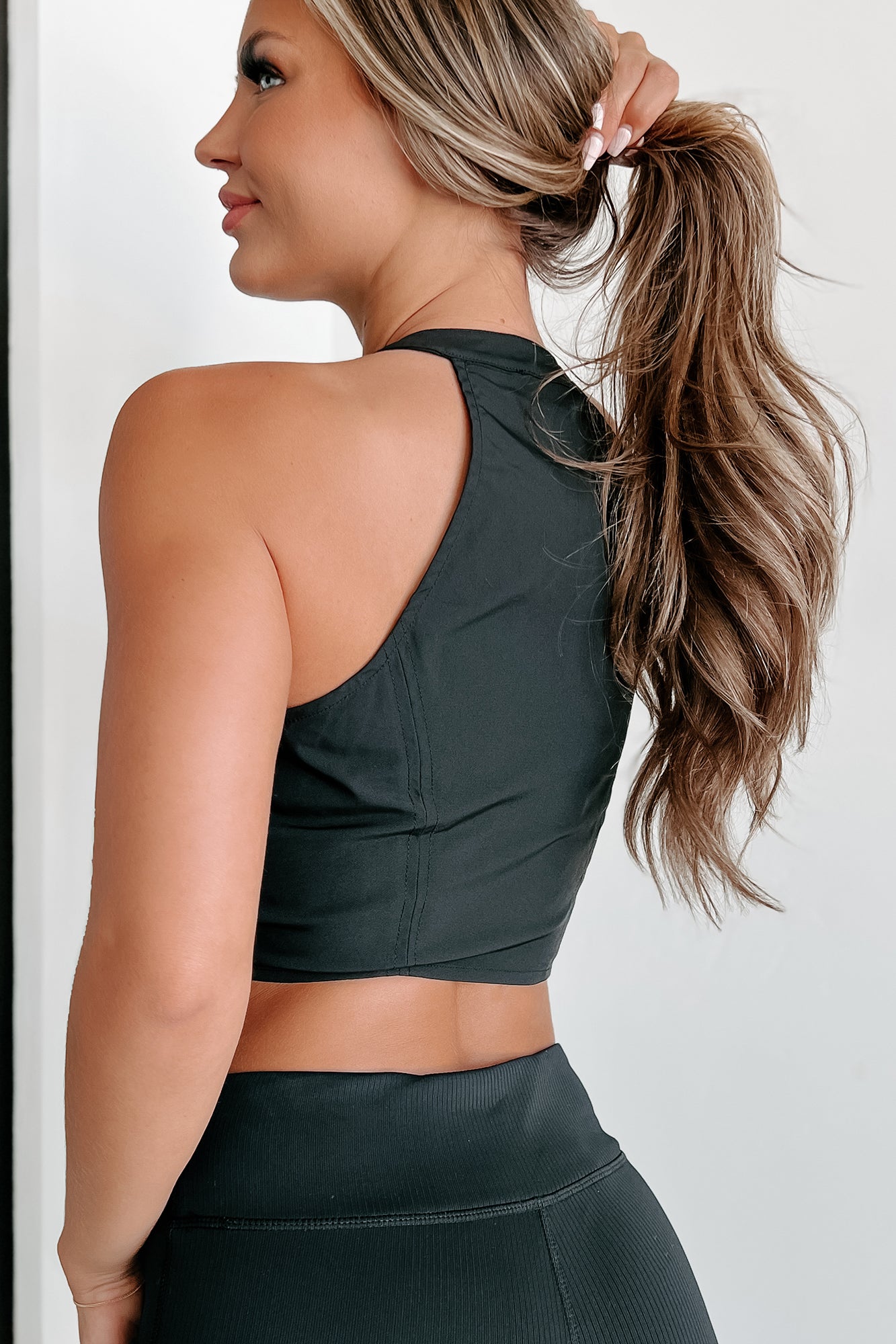 Bad Girl Energy Zip-Front Halter Neck Crop Top (Black)