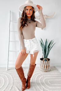 Basic Beauty Mock Neck Long Sleeve Bodysuit (Mocha)