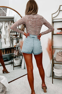 This Taupe, Floral Bodysuit Is A Statement Piece! You'll Love The Ruched Design Combined With The Long Sleeves & Floral Mesh Fabric!