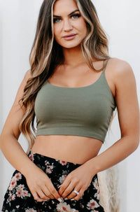 Beat The Heat Knit Cami Crop Top (Olive Green)