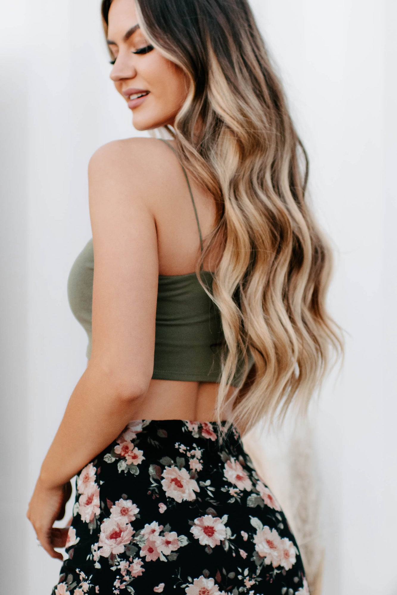 Beat The Heat Knit Cami Crop Top (Olive Green) - NanaMacs