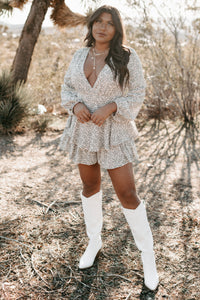 Beautiful Moments Long Sleeve Floral Romper (Peach/Green)