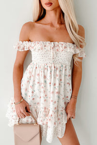 Becoming Her Off The Shoulder Floral Mini Dress (Cream)