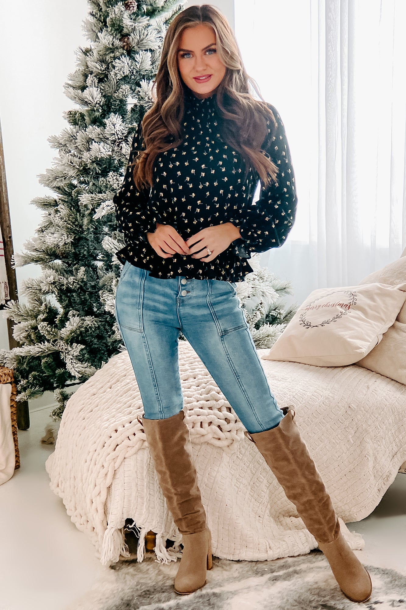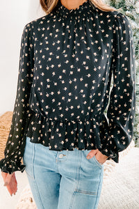 Beginning To Flourish High Neck Long Sleeve Top (Black) - NanaMacs
