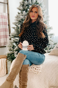 Beginning To Flourish High Neck Long Sleeve Top (Black)