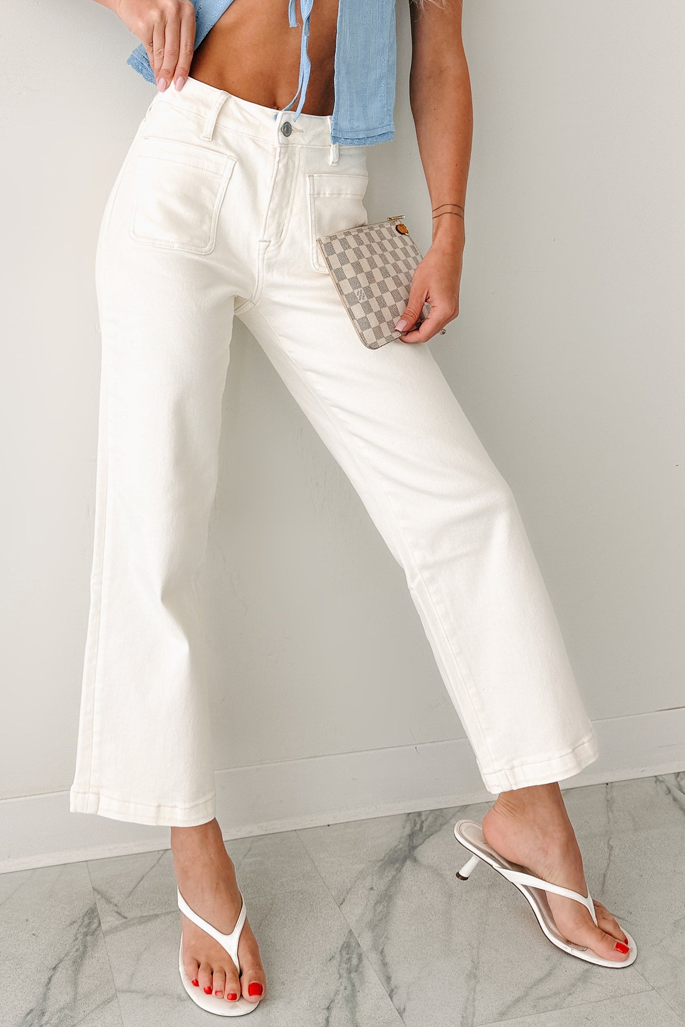 Bella Cropped Wide Leg Mica Denim Jeans (White Chocolate) - NanaMacs