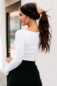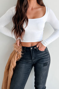 Better Be Sure Square Neck Long Sleeve Crop Top (White)