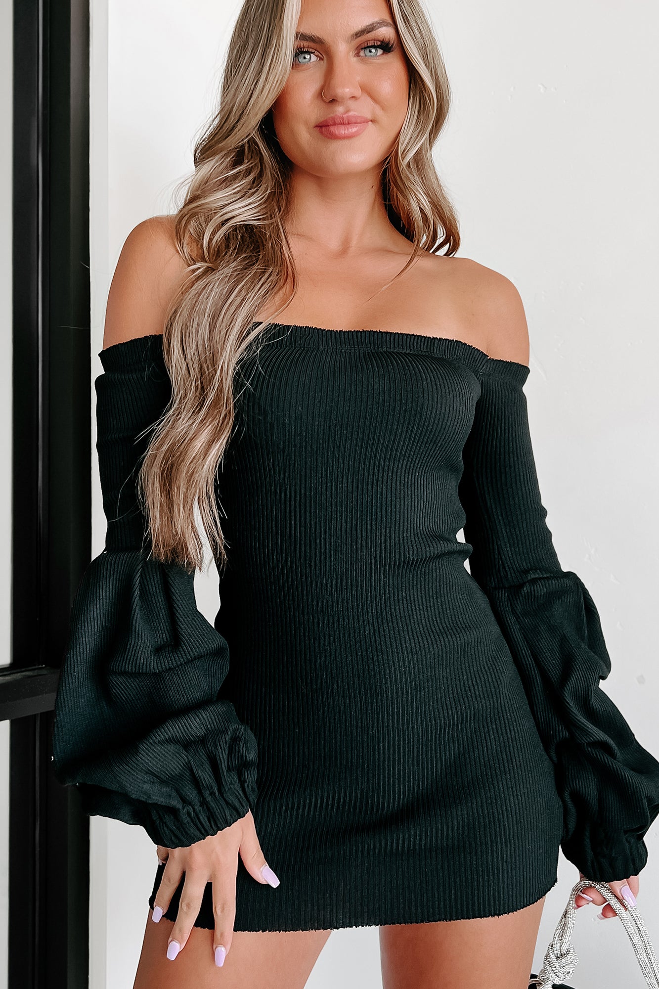 Better & Bolder Off The Shoulder Puff Sleeve Bodycon Dress (Black) - NanaMacs