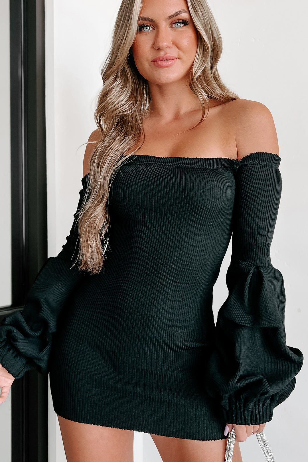 Better & Bolder Off The Shoulder Puff Sleeve Bodycon Dress (Black)
