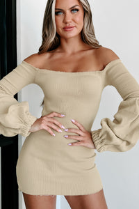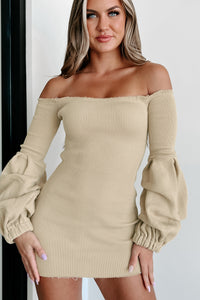 Better & Bolder Off The Shoulder Puff Sleeve Bodycon Dress (Nude)