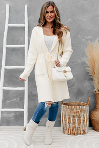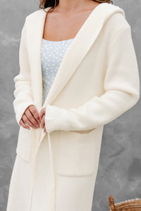 Everything Will Seem Better Once You Get This Ivory, Hooded, Tie-Waist, Cardigan/Coat!