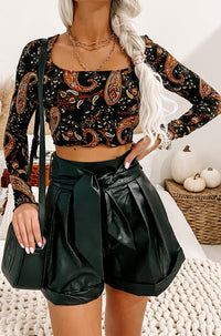 Bexley Paisley Patterned Crop Top (Black) - NanaMacs