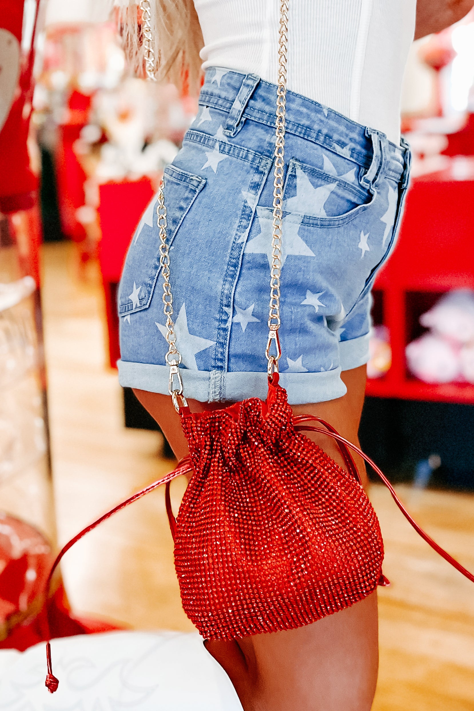 How Adorable Is This Mini Bucket Bag?! This Red, Rhinestone Bag Is Going To Make A Statement!