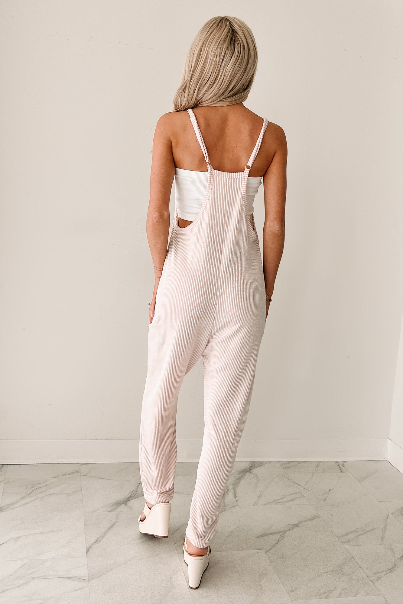 Blankets & Coffee Striped Jumpsuit (Ivory/Pink)